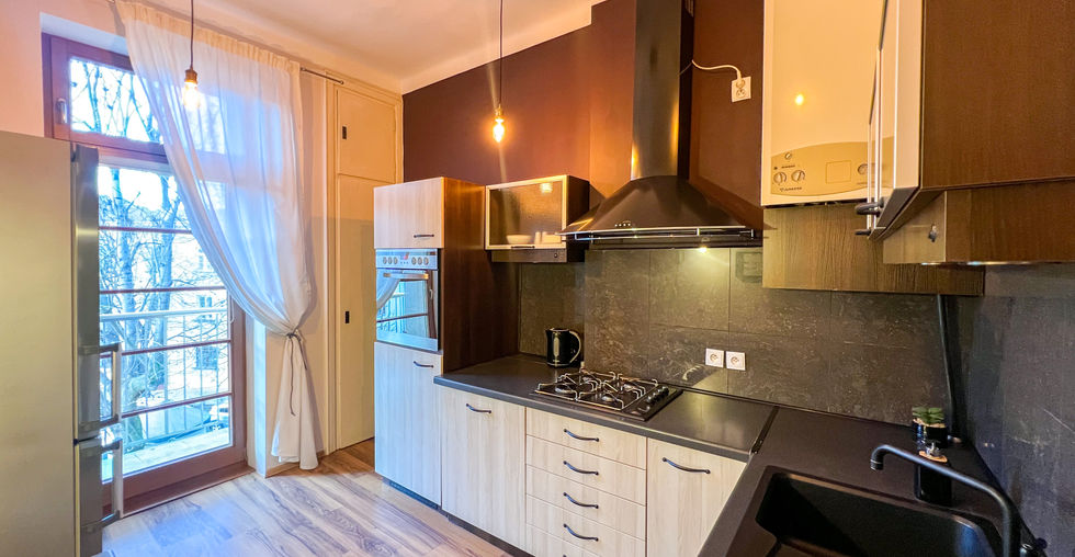 Mieszkanie oraz woda grzane są przez dwufunkcyjny piecyk gazowy z zamkniętą komorą spalania.
